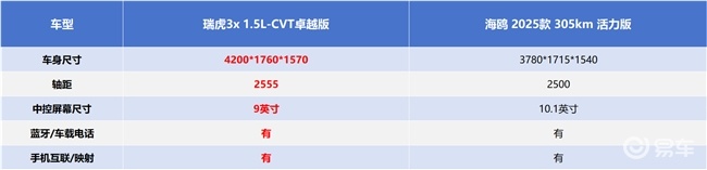 接下来,我们就在5、6万元左右这个区间,以瑞虎3x 1.5L-CVT卓越版(以下简称:瑞虎3x)和海鸥 2025款 305km 活力版(以下简称:海鸥)为例,看一看谁最能满足年轻人“尽在掌控、乐趣横生、安心舒适”的出行快乐。