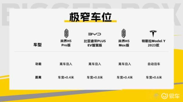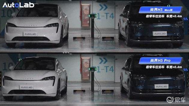 尚界H5的Pro版和Max版在泊车上表现差不多,比车宽多0.4米的空间里都能停好车,比车宽多0.3米的空间里能识别车位,但车头不能完全进去。