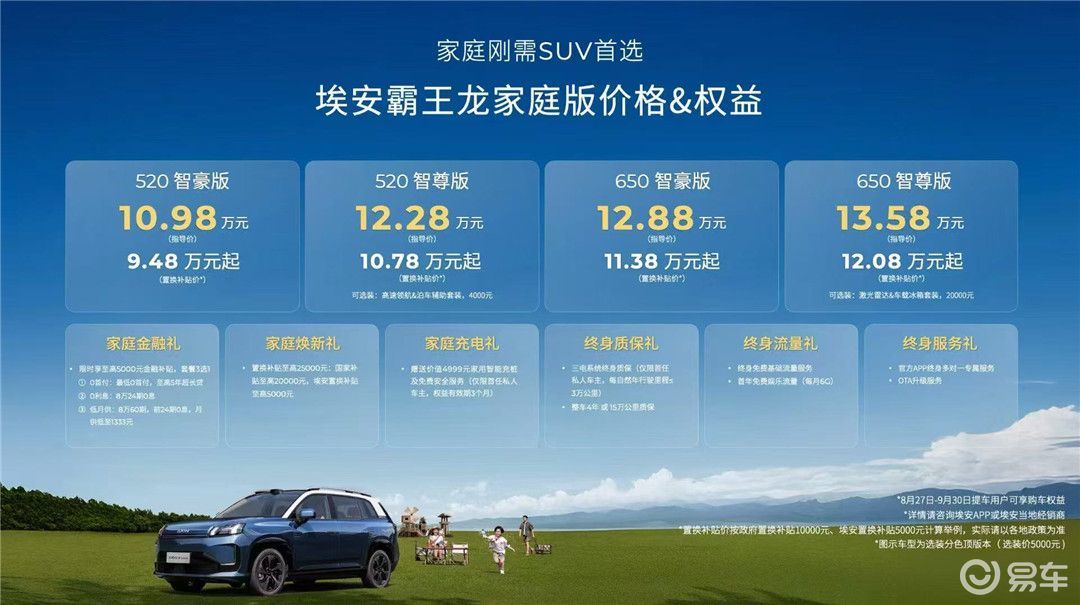 最后来看动力部分,新车将继续搭载两种不同功率的驱动电机,分别为最大功率 150kW、165kW,匹配容量为 62.7kWh、75kWh 的电池组,续航里程分别可达 520km、650km。同时,该车基于 400V 平台打造,支持 3C 快充。此外,在悬架方面,新车全面升级为前麦弗逊式 + 后五连杆式独立悬架,大大提升了驾乘的舒适度。在辅助驾驶方面,部分版本配备了激光雷达,支持高速 / 城区 NDA、全场景智能泊车辅助等功能。虽说并非最为出色,但基本上同级别车型有的功能,这款霸王龙也都具备了。目前新车已全面开售,售价为10.98万元起,至于这款车能否在市场上掀起波澜,让我们拭目以待!