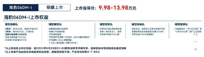 而在发布会的现场,比亚迪也公布了全新车型海豹06 DM-i的售价,全系共五款车型,售价区间为9.98-13.98万元。作为海洋网的全新车型,新车和秦L采用同平台打造,搭载最新的第五代DM系统,CLTC工况纯电续航有80km和120km两种。