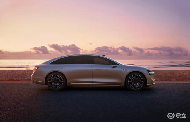 新车侧面造型优雅又大气,一看就经过符合空气动力学的精密测算,流畅,平滑,几乎没有明显凸起,门把手采用隐藏式设计,可以降低风阻。新车搭载内置流媒体后视镜,实际后视镜位置仅仅是一个摄像头,体积明显缩小,同时可以大幅度降低风阻。车顶造型非常流畅,一条圆弧镀铬条像穹顶一样镶嵌在车顶,大幅度提升了豪华感。新车将提供20英寸、21英寸等不同样式的轮辋,金属切削样式的辐条式轮毂具有一种古典的优雅气质。车顶上的激光雷达,暗示新车具有高阶的智能辅助驾驶。车尾部分,享界S9配备了贯穿式的尾灯设计,尾部有“北汽新能源”和“享界S9”标识表明身份信息。