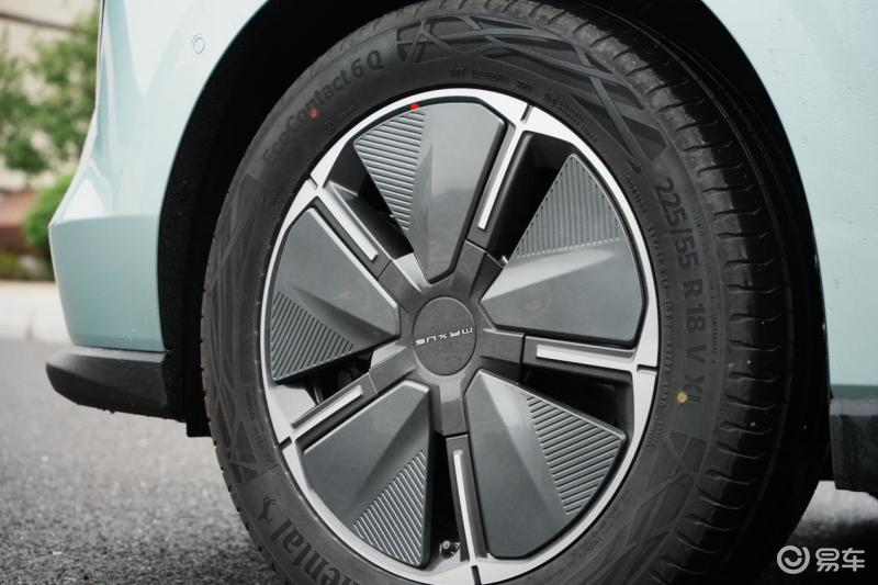 低风阻轮圈在纯电车型中很常见,轮圈尺寸为18英寸,与之匹配的是225/55 R18的马牌EC6,也是这个价位新能源车们常用的一款轮胎了,对胎噪的控制做得很不错。