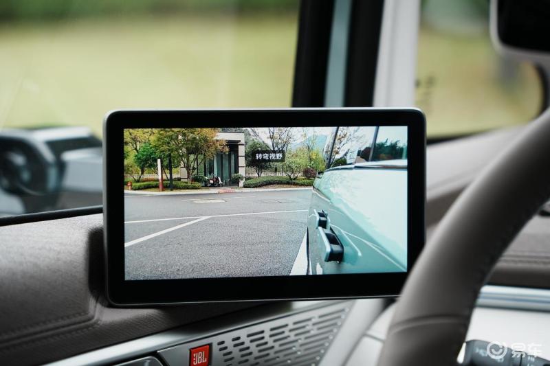 车内相对不常规的就是电子后视镜的布局,左右分别采用了一块大小为6.59英寸,分辨率720P的屏幕,首先整块屏幕的亮度以及观感都不错,这个位置布局也尽量适应人们的使用习惯了,放置于门板上方。