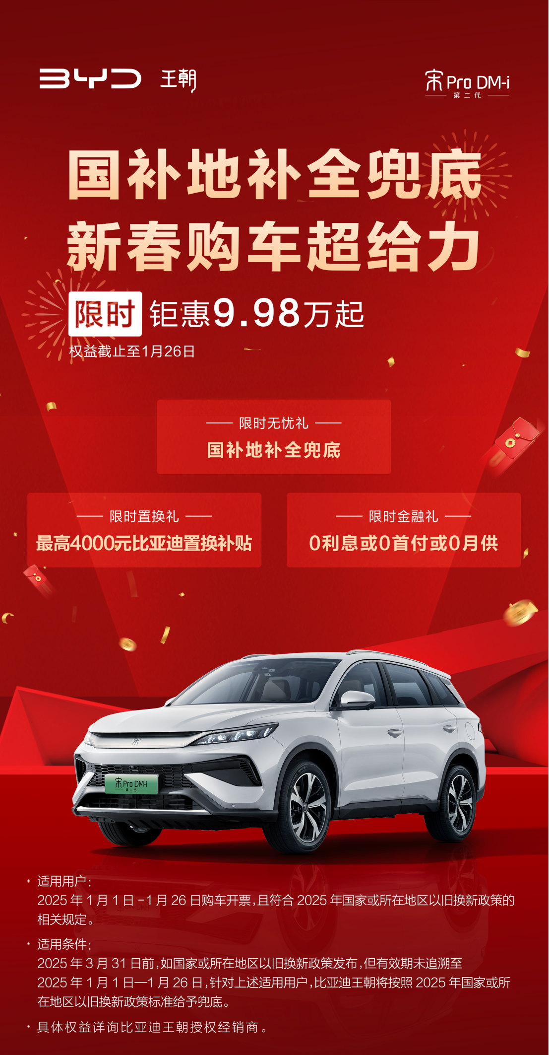 首先,比亚迪的以旧换新政策为消费者提供了极大的便利。2025年1月1日至1月26日期间,购买比亚迪王朝网旗下多款车型并完成开票的用户,如果符合国家或地区的以旧换新政策,可以享受相应的补贴。如果政策有效期未能覆盖到这个时间段,比亚迪还会按照当时的政策标准为用户兜底。这一举措不仅显示了比亚迪对消费者的诚意,也提供了额外的服务保障,让购车过程更加安心。