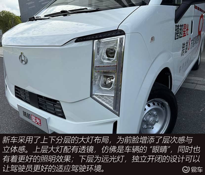 跨越星光采用封闭式前脸设计,这也是新能源车型常见的设计风格。流畅的线条勾勒出简洁而富有科技感的视觉效果,彰显出车辆前卫的造型与环保属性。