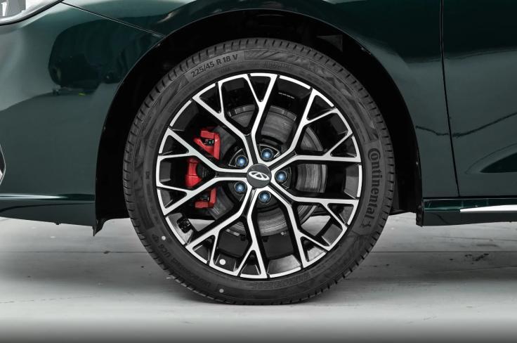 轮辋部分,新车提供18英寸树杈样式轮辋,由于前后制动器均采用红色涂装处理,所以整体视觉效果看起来比较个性,区别于普通版车型。与之匹配的轮胎来自马牌UC6,规格对应225/45 R18,主打操控性和抓地力,短板是胎噪抑制不及米其林等静音轮胎。尺寸方面,新车长宽高来到4800x1843x1469mm,轴距2790mm。作为对比,吉利星瑞长宽高对应4825x1869x1469mm,轴距2800mm。