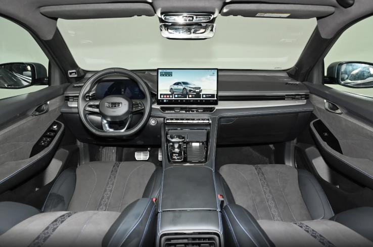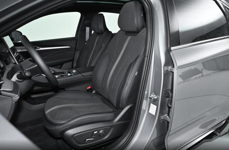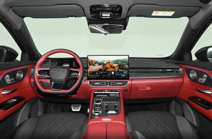 再看内饰,新车并没有对座舱设计做出差异化的改动,延续了在售车型的风格,继续配备三辐式方向盘,握持手感扎实,保留触控按键设计,搭配15.6英寸悬浮式中控屏(搭载骁龙8155、Lion操作系统)以及电子挡把来看,强化了座舱的科技氛围感。相比之下,吉利星瑞同价位的东方曜·望月版并未使用欢快的酒红色或棕色双拼色内饰,但门板内侧到座椅都有翻毛皮材质的包覆,同时电子挡把的造型也比较别致,搭配钢琴按键式空调控制区域以及14.6英寸中控屏(同为骁龙8155座舱芯片,搭载FlymeAuto操作系统)来看,座舱高级感也不遑多让。