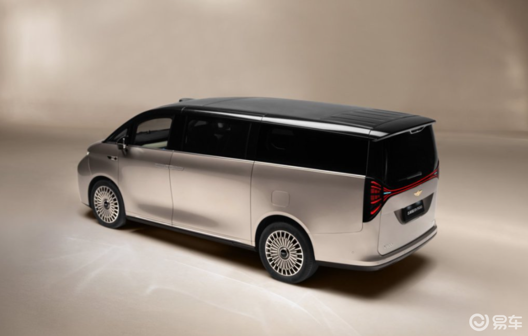 吉利银河V900的车身长宽高分别为5360×1998×1920mm,颇有陆地游艇的气场。前脸水韵金晖格栅堪称点睛之笔,6层金晖水韵勾勒出波浪形态,阳光照射下如金鳞闪耀,兼具西湖的灵秀与泰晤士河的恢弘。来到车身侧面,采用金色车身+黑色车顶的设计,隐藏式门把手、密辐低风阻轮辋相得益彰,双侧电动滑门则保障了便捷出入;车身尾部,“天马展翼”超宽体飞翼尾灯以横向舒展,夜间辨识度极高,光影变化中呈现星空般闪烁的豪华质感。