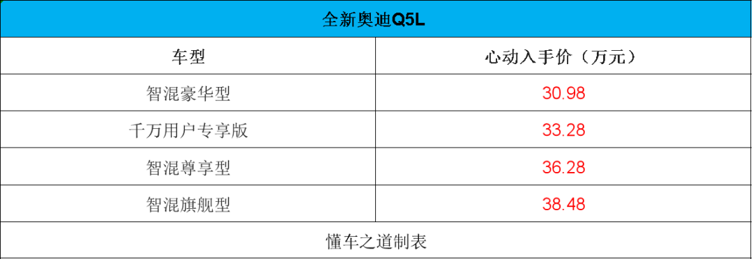 1月15日,在2026一汽奥迪千万用户盛典暨新品发布之夜上,全新奥迪Q5L迎来正式上市,心动入手价30.98-38.48万元。同时,官方推出五重礼遇。作为第三代车型,新车将会在奥迪最新的PPC豪华燃油平台打造,并且搭载华为乾崑智驾。动力方面,新车搭载EA888 Evo5 2.0TFSI发动机,并提供最大功率150千瓦和200千瓦两种调校,此外还配备48V轻混Plus系统。传动部分,匹配7速双离合变速箱并配备quattro四轮系统。