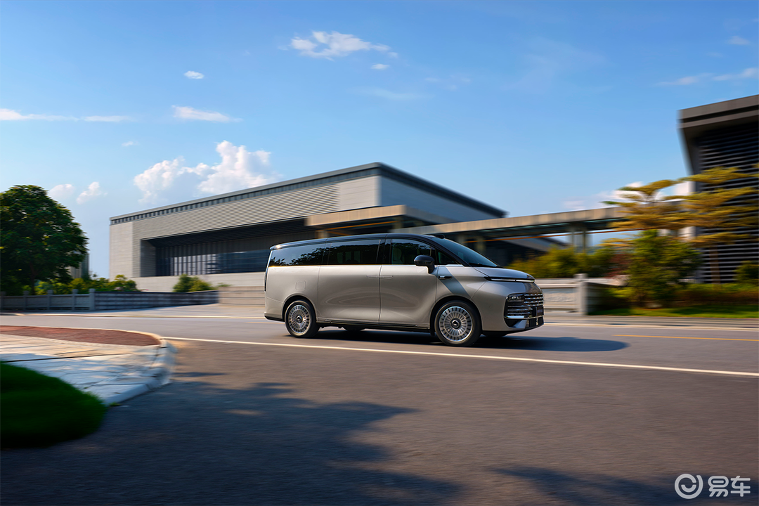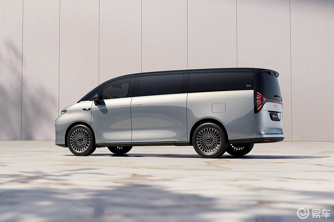 车身侧面,新车车身线条流畅优雅,贯穿式腰线从前翼子板延伸至车尾,营造出修长而动感的姿态。得益于超高的空间利用率与紧凑的“超级AI增程系统”布局,车身比例协调,悬浮式车顶和镀铬窗线进一步提升了豪华气质。