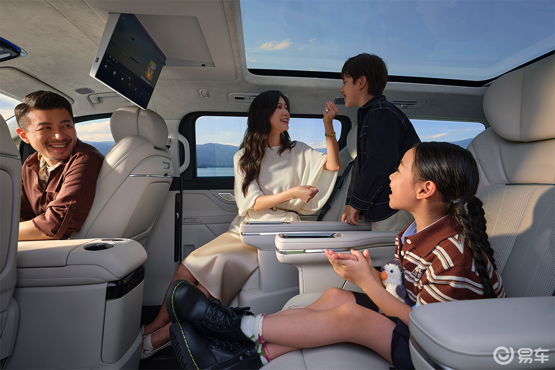 座椅采用11层云感SPA座椅结构,覆盖Nappa真皮,一二排标配通风、加热、按摩与记忆功能,三排也配备通风、加热与电动靠背调节,真正实现“座座皆豪华”。围绕全家出行场景,银河V900搭载多项越级舒适配置:27扬声器Flyme Sound无界之声音响系统,配合后排娱乐巨幕,打造沉浸式移动影音空间。-6℃~50℃超宽温域冷暖箱,支持饮品冷藏与食物保温。全车采用双层夹胶静音玻璃,配合主动降噪技术与静音轮胎,实现图书馆级NVH静谧性。座舱采用全环保材料,配备智能新风系统与负氧离子发生器,呵护家人呼吸健康。