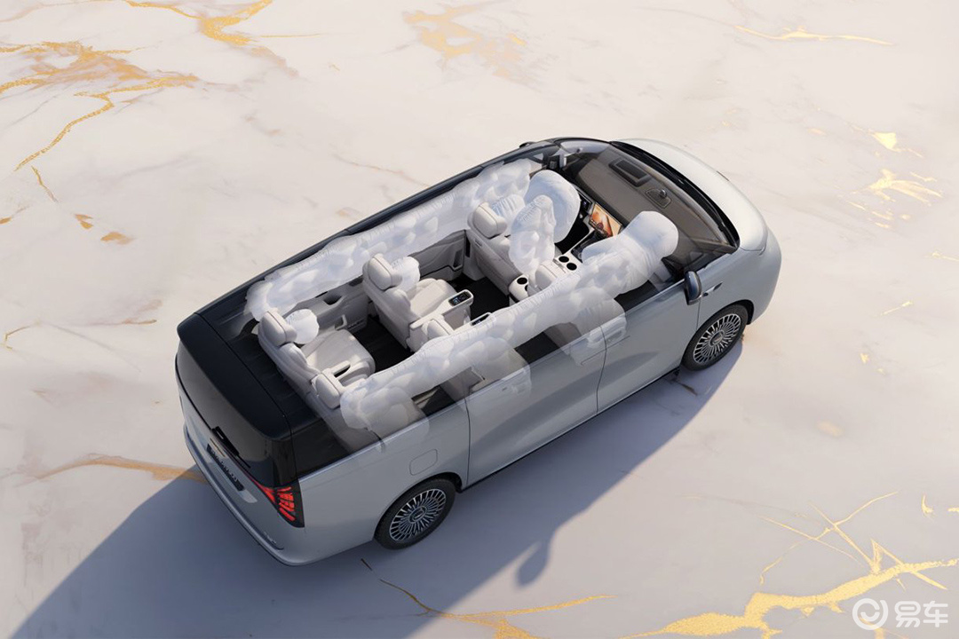 安全方面,吉利银河V900以“星甲车身”为核心,构建全方位安全防护体系:车身高强度钢占比76.6%,关键部位采用2000MPa军工级热成型钢。全球最多11处环抱气囊,配备同级最大224L侧气帘,贯穿至第三排。三排座椅采用全金属背板与高强度钢骨架,可承受极高拉力,有效防止追尾穿刺风险。成功通过行业首次mpv“魔鬼三连碰”超国标测试,包括强化电池托底、高速追尾与Z字夹击碰撞,验证其极致安全实力。