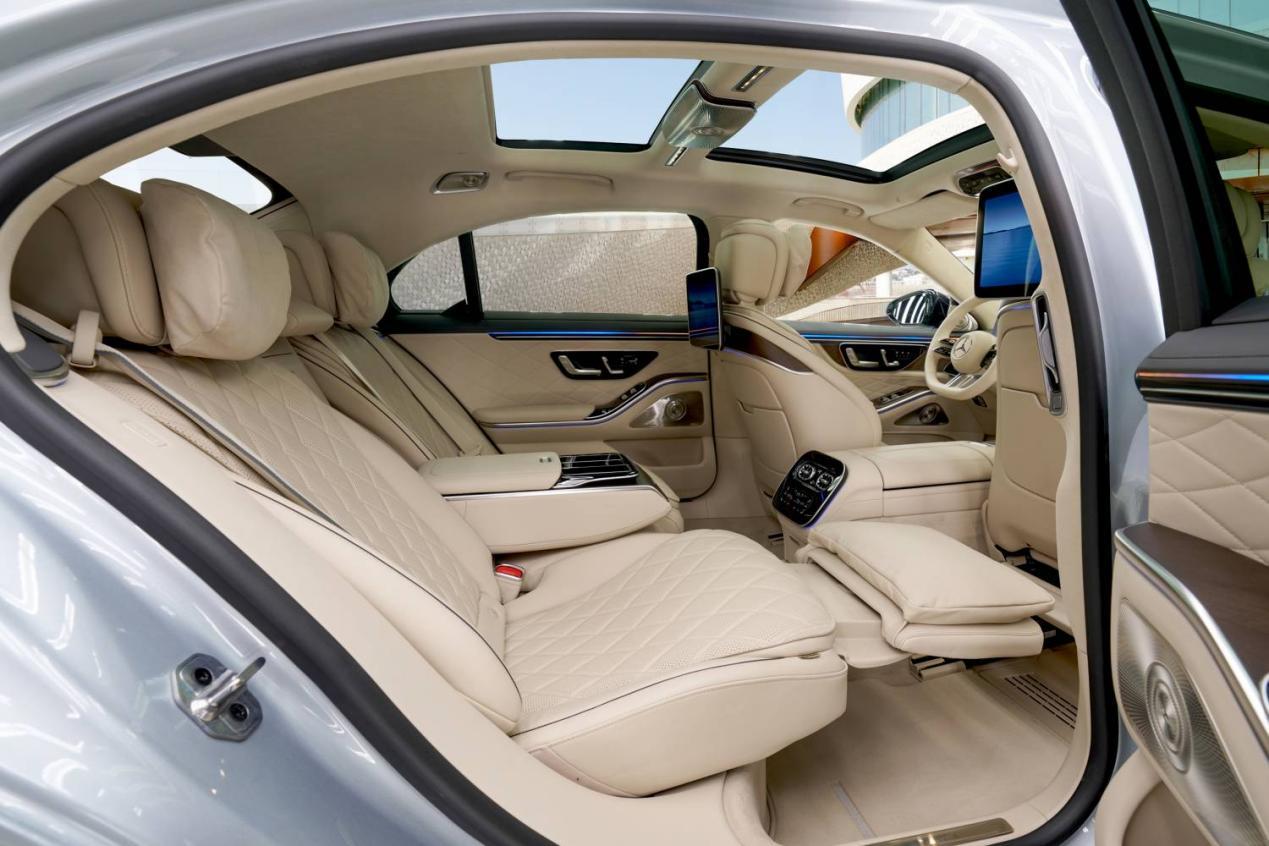 内饰方面,新款奔驰S级将采用类似奔驰E级的“MBUX超级屏”,中控屏和副驾娱乐屏双屏一体,镶嵌在中控台的一体化玻璃内部,液晶仪表盘采用悬浮式布局,前方还配备了大尺寸HUD抬头显示系统,奠定科技豪华的主基调。三辐式方向盘与招牌的电子怀挡没缺席,中央扶手处覆盖木纹饰板,提供无线充电功能和盖板储物格。