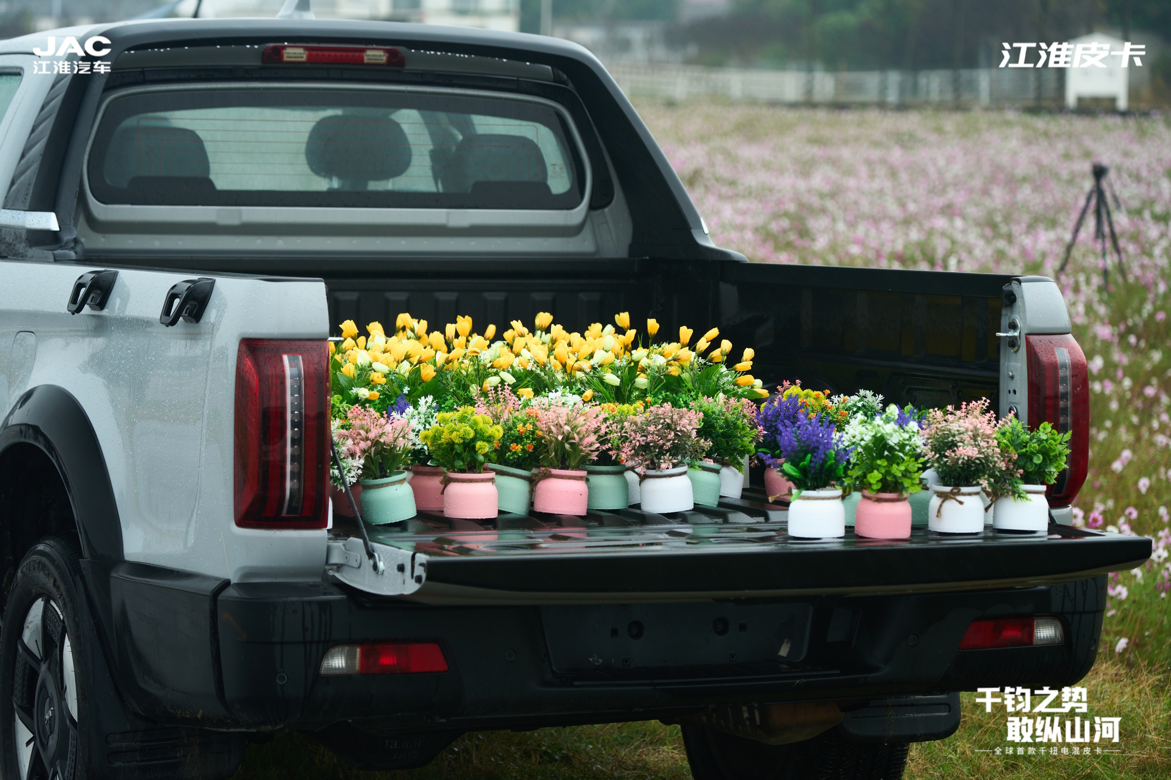 千亩有机农场旁,江淮悍途PHEV 1.81米的长货箱轻松容纳多个标准果箱,重载状态下依旧能稳健起步。格桑花盛开的田园间,货箱内满载的鲜花与其硬朗的车身线条相得益彰。湖畔露营区里,3.3kW外放电功能的实用价值得到充分体现,可同时为咖啡机、烧水壶等设备供电,让皮卡升级为移动的能源站、全家的欢乐岛。