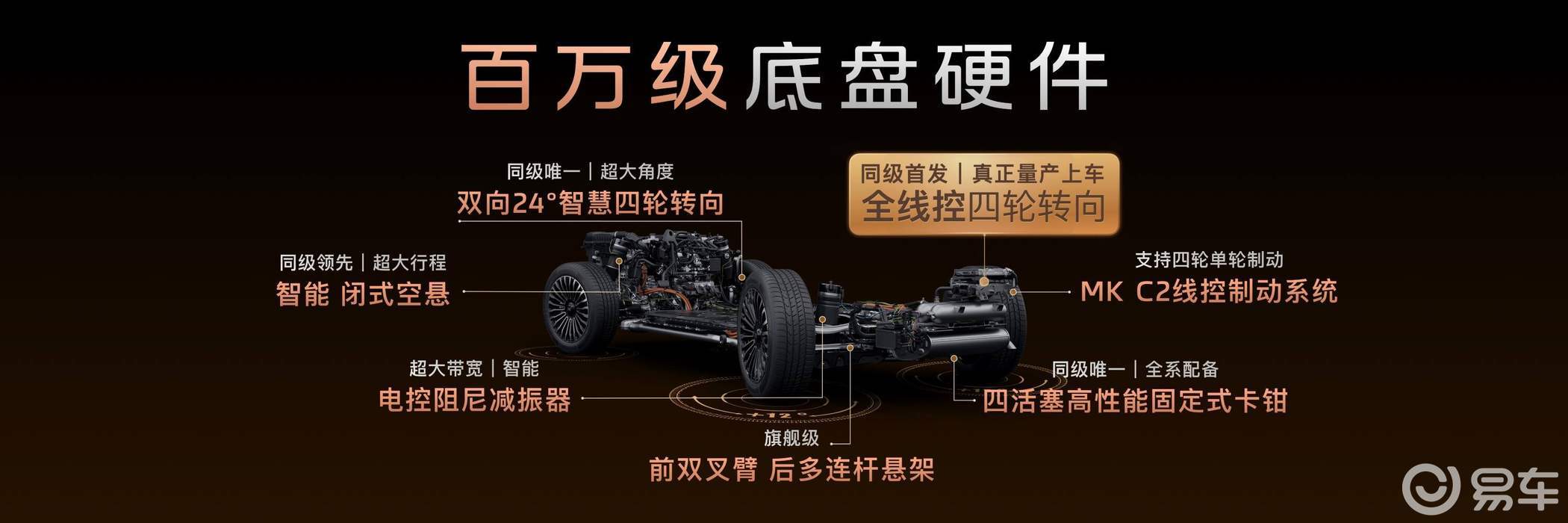 智己LS8全系配备灵蜥数字底盘3.0,全满贯百万级底盘硬件30万内即可尊享。双电机矢量四驱系统爆发390kW最大功率、670Nm峰值扭矩,带来比肩4.0T V8级别的4秒级零百加速;34.38米同级最短百公里刹停距离,给用户和家人多一份安全保障。灵蜥智能控制中枢,实现高速过弯无侧倾,颠簸路面更平顺,全家出行告别晕车,尽享超越百万的驾驶品质!