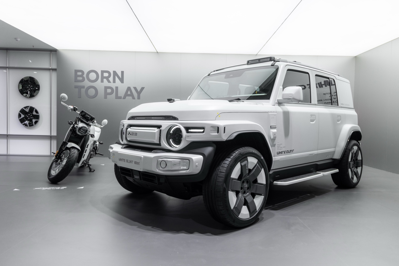 除了面向未来的概念车,V系列家族的登场也很有看点。主打家庭出行的V27,这次带来了右舵国际版,能清晰感受到品牌全球化布局的底气;自带玩家属性的V23,这次亮相的白武士版本,直接给改装爱好者打了个满分范本,同场的ROBOB新能源摩托车,也让我们看到了品牌设计能力的跨品类突破。